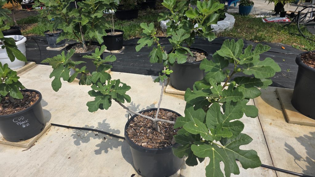 My Chicago Hardy is looking robust and healthy, with figs developing on every node. Despite a soil pH of 4.0, it appears to be doing well