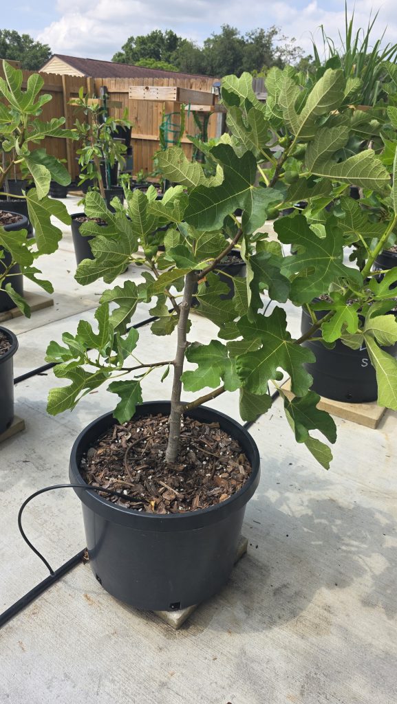 This tree is 8 months old, purchased from FigBid, and has been very vigorous so far. It’s supposed to be a great large honey fig, though I’m not sure how well it will perform in our humid and rainy climate. Still, I’m hoping to get at least a few figs to try this season. No Figlets.